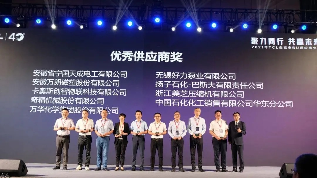 6月20日,2021年“TCL白家电BU供应商大会”在合肥融创万达文化酒店隆重举行,大会以“聚力同行,共赢未来”为主题,云集了TCL共计168家供应商伙伴参与,共商合作,共谋发展。卡奥斯创智物联作为TCL的战略合作伙伴,荣获“优秀供应商”和“同舟共济”两项大奖。